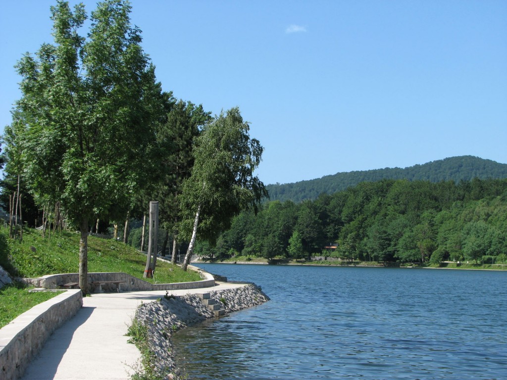 Von der Höhle Vrelo aus fahren Sie weiter am Ufer des Sees Bajer vorbei und kommen bald ins Zentrum des Ortes Fužine, der 730 Meter über Seehöhe liegt und von malerischen Bergen, jahrhundertealten Nadelwäldern und wunderschönen Seen umgeben ist. Außer mit dem Fahrrad können Sie diese Gegend und insbesondere den See Bajer auch zu Fuß, mit einem Ausflugsboot, einem „Bummelzug“ oder einer Kutsche erkunden.
