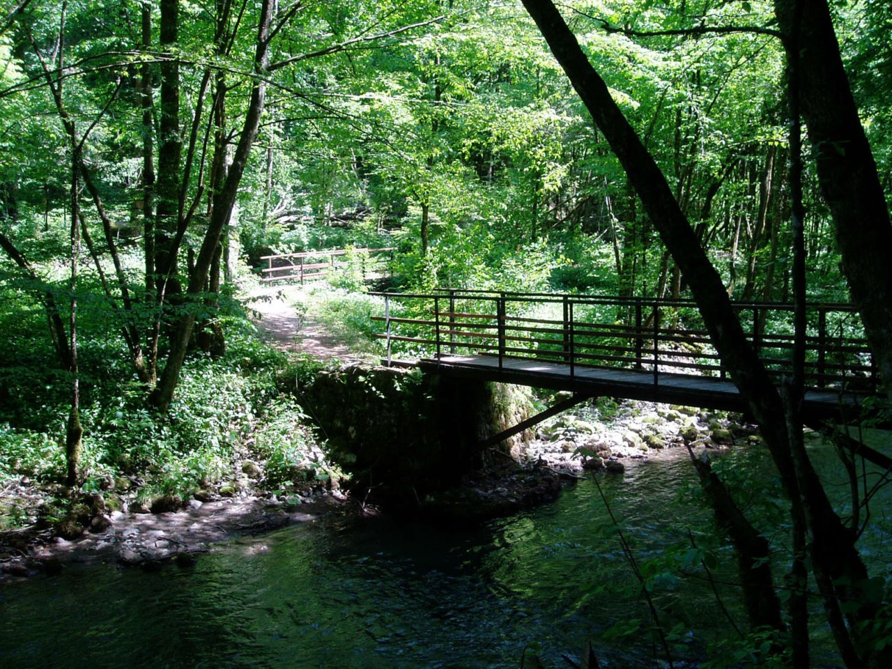 Turn right and you will pass by the Sports Hall and the swimming-pool complex. Then you reach the crossroads with the street that leads from Delnice towards Brod na Kupi (P 8). Here you can take the connection street to reach Kupa valley or continue through the transverse road to reach the crossroads in the direction of Petehovac. Just after passing the crossroads, turn left and you will reach the Dama’s (Lady’s) bridge – over 200 years old stone, massive bridge which due to the rapidly expanding foundations, that, if looking from aside, looks like a big woman dress, crinoline, is called Dama (Lady’s Bridge). After passing the bridge turn right and through the railway tunnel start ascending toward 1098 metres high peak Petehovac which, as an important landscape, has a particular place in tourism of Delnice. After 3.2 km long rise, you will reach the crossroads towards the Polane high plane and then turn left.