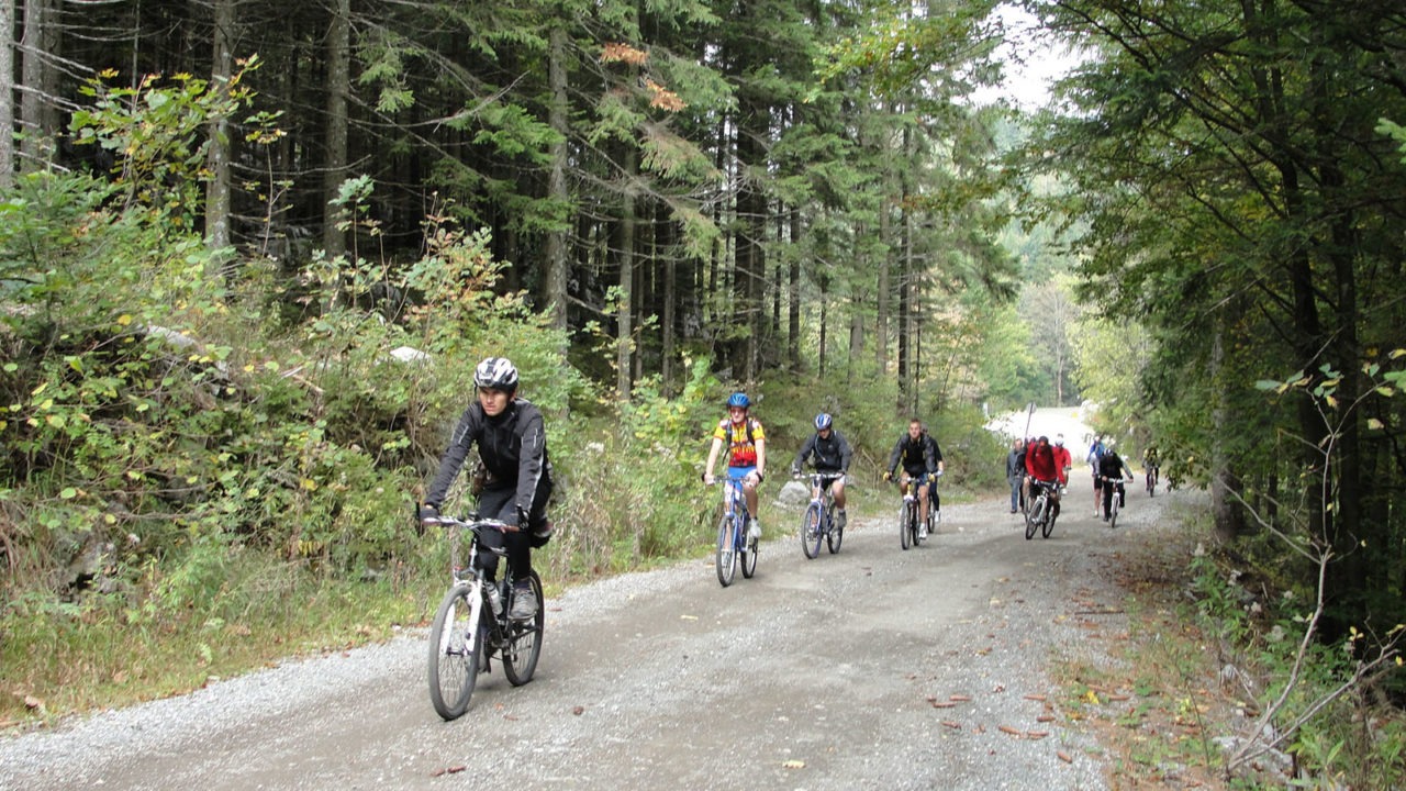 On the main crossroads in Brestova Draga you can also turn left towards Sunger, whilst the transverse road will take you directly towards the Rudine area. A pleasant ride on the plain gravel road through a dense, dominant and respectable fir tree forest is something that you will surely remember. After less then 3 km you will arrive to the Rudine area and to the crossroads on which you turn left and continue on the gravel road for another 4 km to Kruljčev laz where, on the crossroads, you turn left again. After 1.5 km, a great terrain of the forest road will take you to the Zagmajna biathlon centre after which the asphalt road begins that will take you down to Mrkopalj. After the first Mrkopalj houses on your right, you will see the Čelimbaša ski resort with a 720 metres long ski lift and 3 slopes of a total length of 2,500 metres. From the bottom of the ski resort continue towards the centre of Mrkopalj and exit again on the Karolina road. Mrkopalj was mentioned at the end of 15th century, whilst it experienced its complete development with the construction of the Karolina road. Mrkopalj is also called the “Craddle of Croatian Skiing” as the first organized ski course in Croatia began here in the far 1913. Besides the Čelimbaša ski restort, Mrkopalj offers alpine sking in Begovo Razdolje as well as Nordic skiing and biathlon in Zagmajna and Vrbovska Poljana.