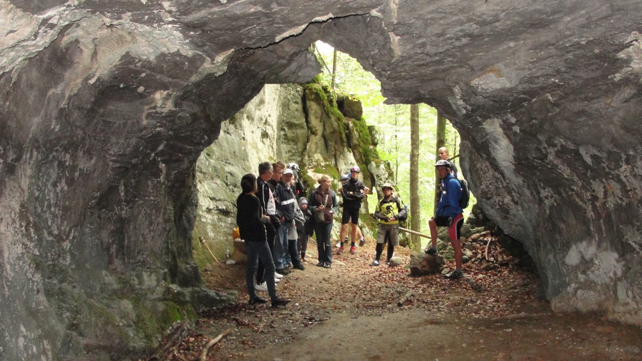 From here you continue on Karolina road ascending towards the area called Sleme. At the end of the rise you will come to the crossroads on which you turn left. Before turning towards Lokve, we sugget you to continue straight where, after 500 metres, will arrive to the Bukovac Cave entrance. It is the cave in which have been found traces of the prehistoric man and bones of the cave bear.. Archeological researches are still carried out in this almost 100 metres long cave. You will need a lamp or a torch to visit the cave as it is not illuminated.
